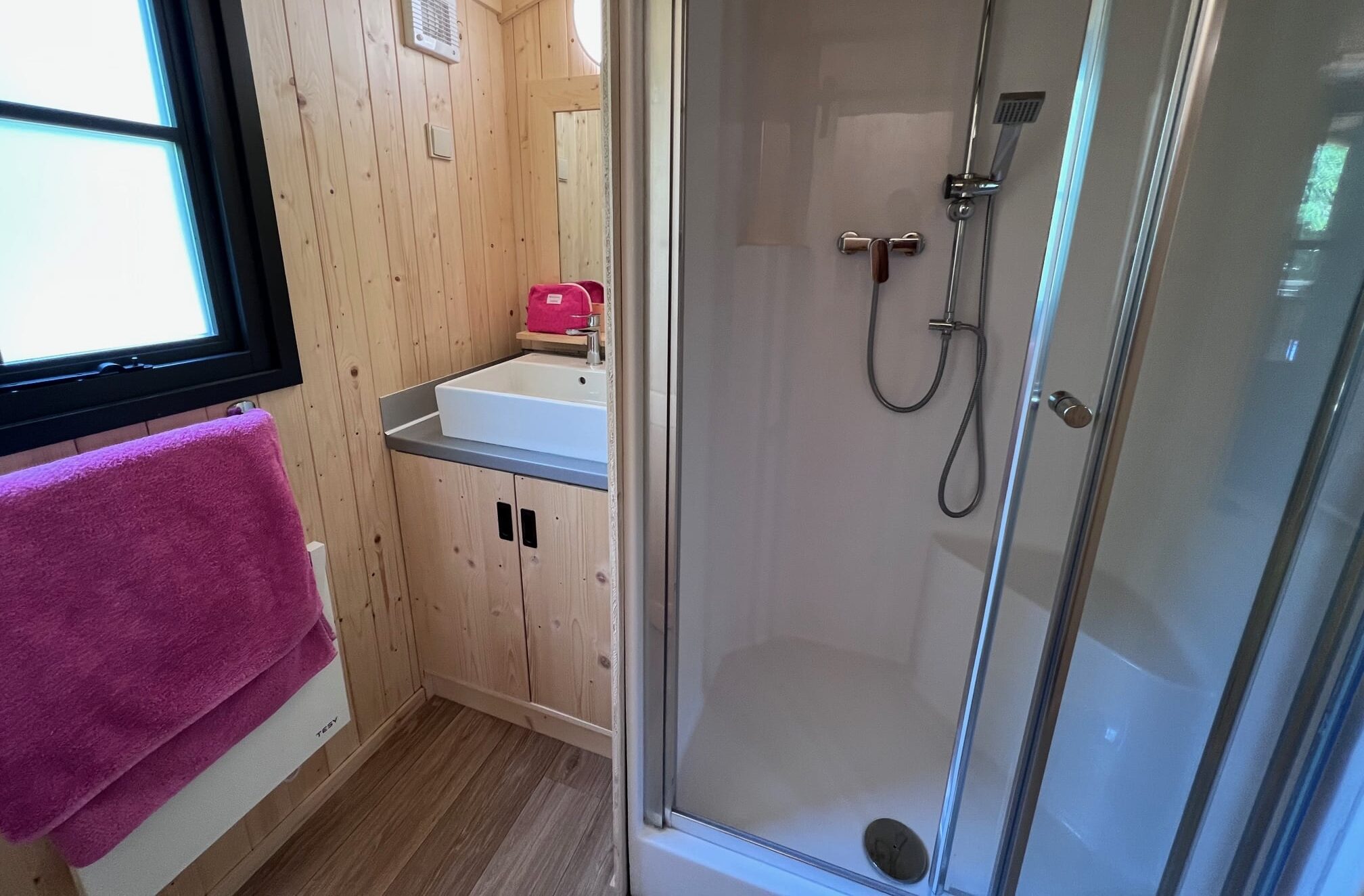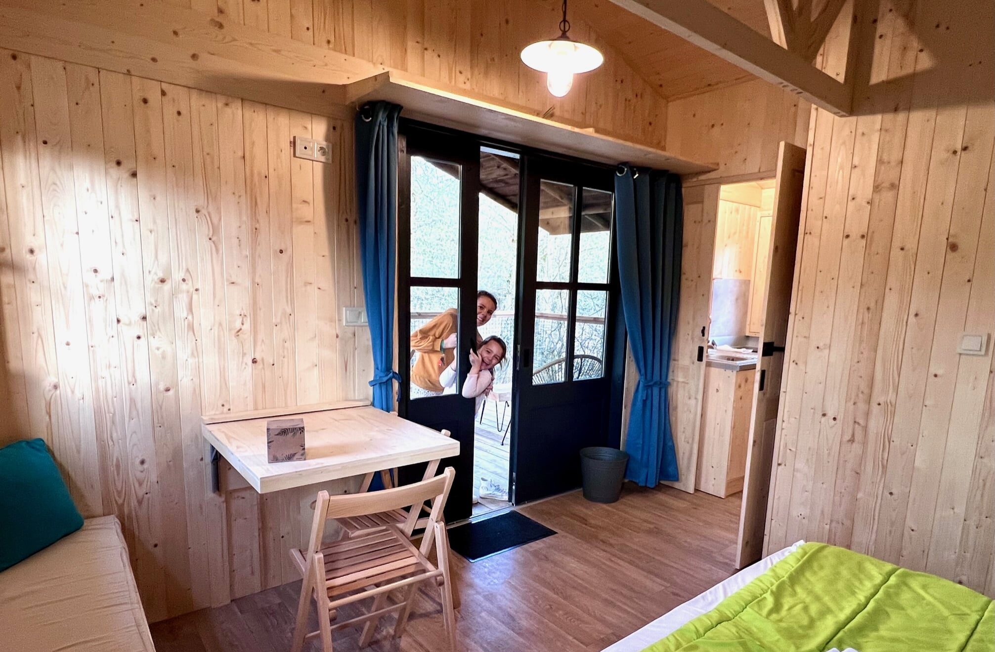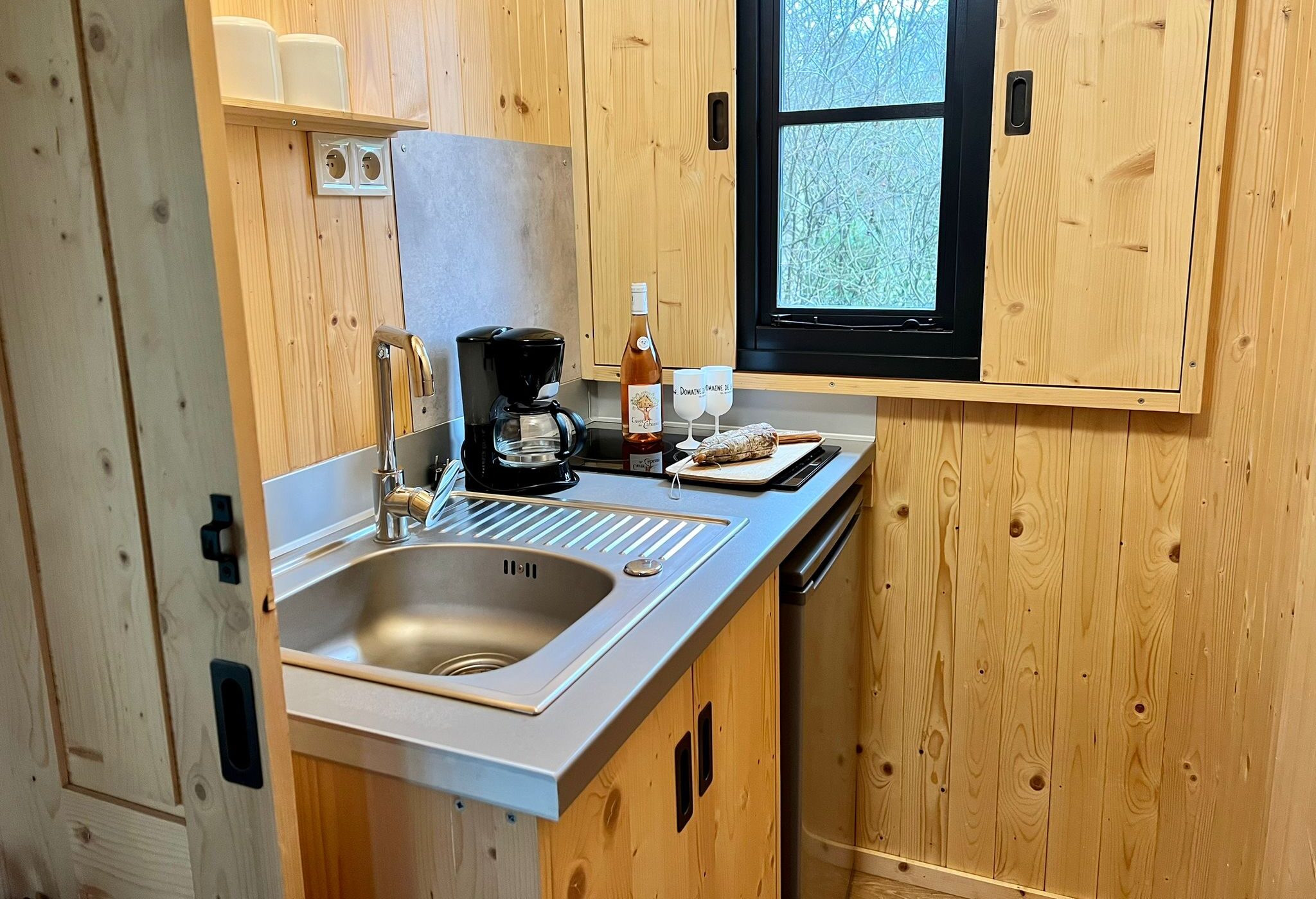 Cabane trio en gamme luxe avec sa propre salle de bain et petite kitchenette pour votre confort.