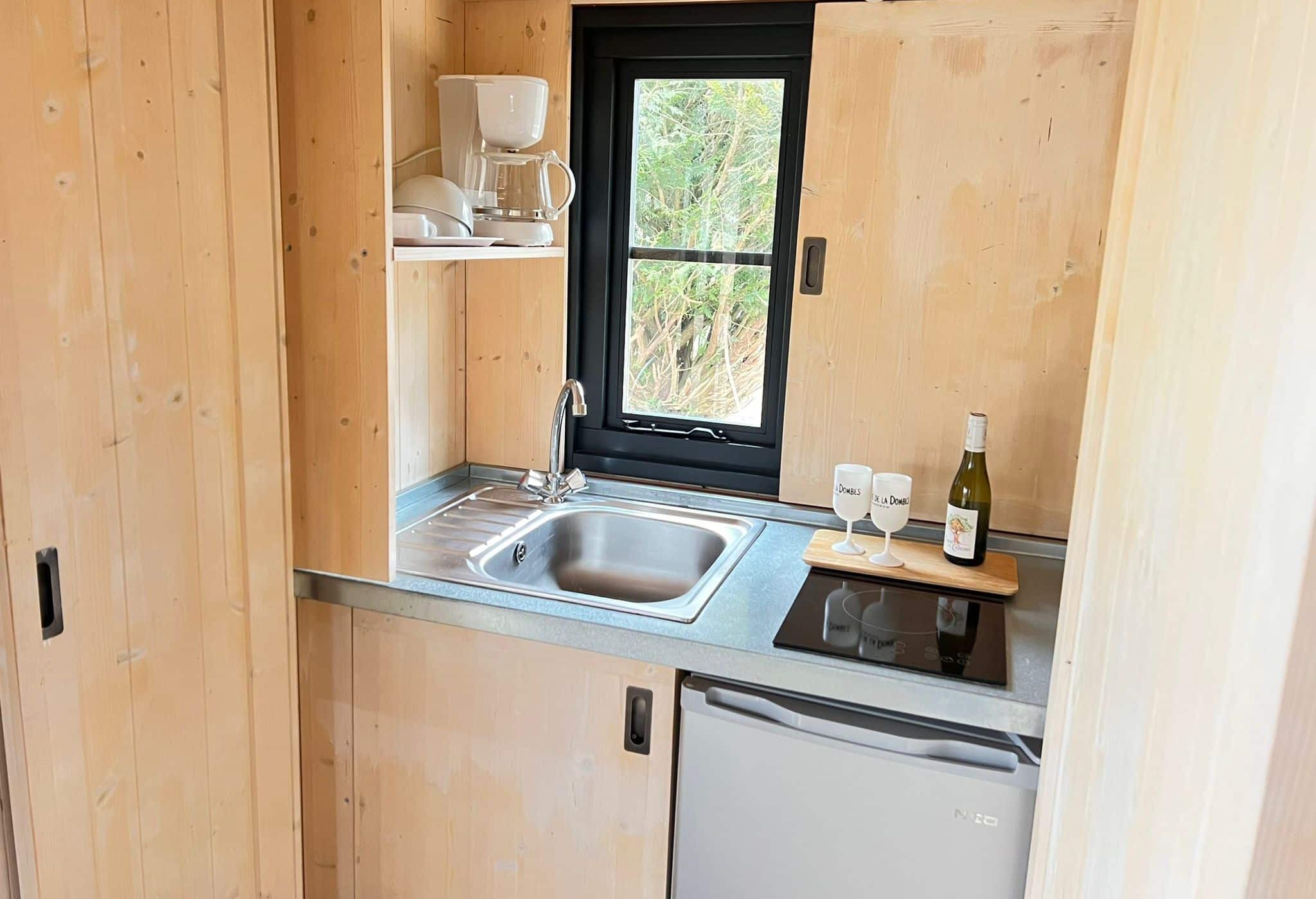 Une cabane duo en gamme luxe avec sa propre salle de bain et petite kitchenette. Complètement au milieu du parc des Cerfs et des Daims, surélevée sur pilotis, elle permet d’être véritablement au plus près des animaux. Splendide terrasse aménagée avec un mange debout et des transats, qui vous invitent à la détente absolue.