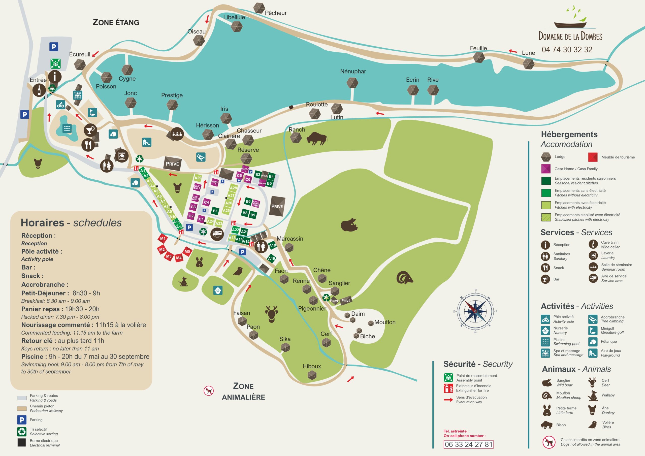 En plus de l’accrobranche, le Domaine de la Dombes propose une multitude d’autres activités pour compléter votre journée d’aventure. Explorez nos sentiers de randonnée à travers les bois, partez pour une balade en rosalie le long de nos étangs, ou défiez vos amis et votre famille lors de jeux en plein air. Et surtout, laissez-vous émerveiller par l’un des huit parcs animaliers où vous pourrez découvrir nos magnifiques animaux dans un environnement naturel.